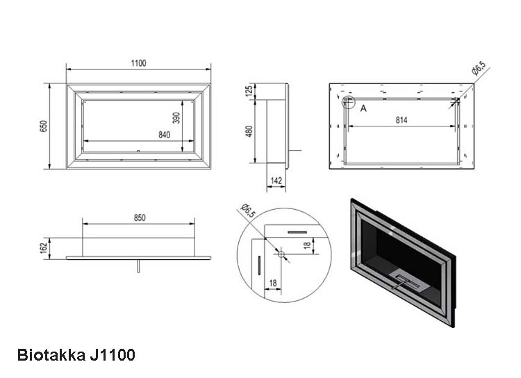 sisäänrakennettu. Vaatii palamattoman taustan, kuten biotakat yleensä.