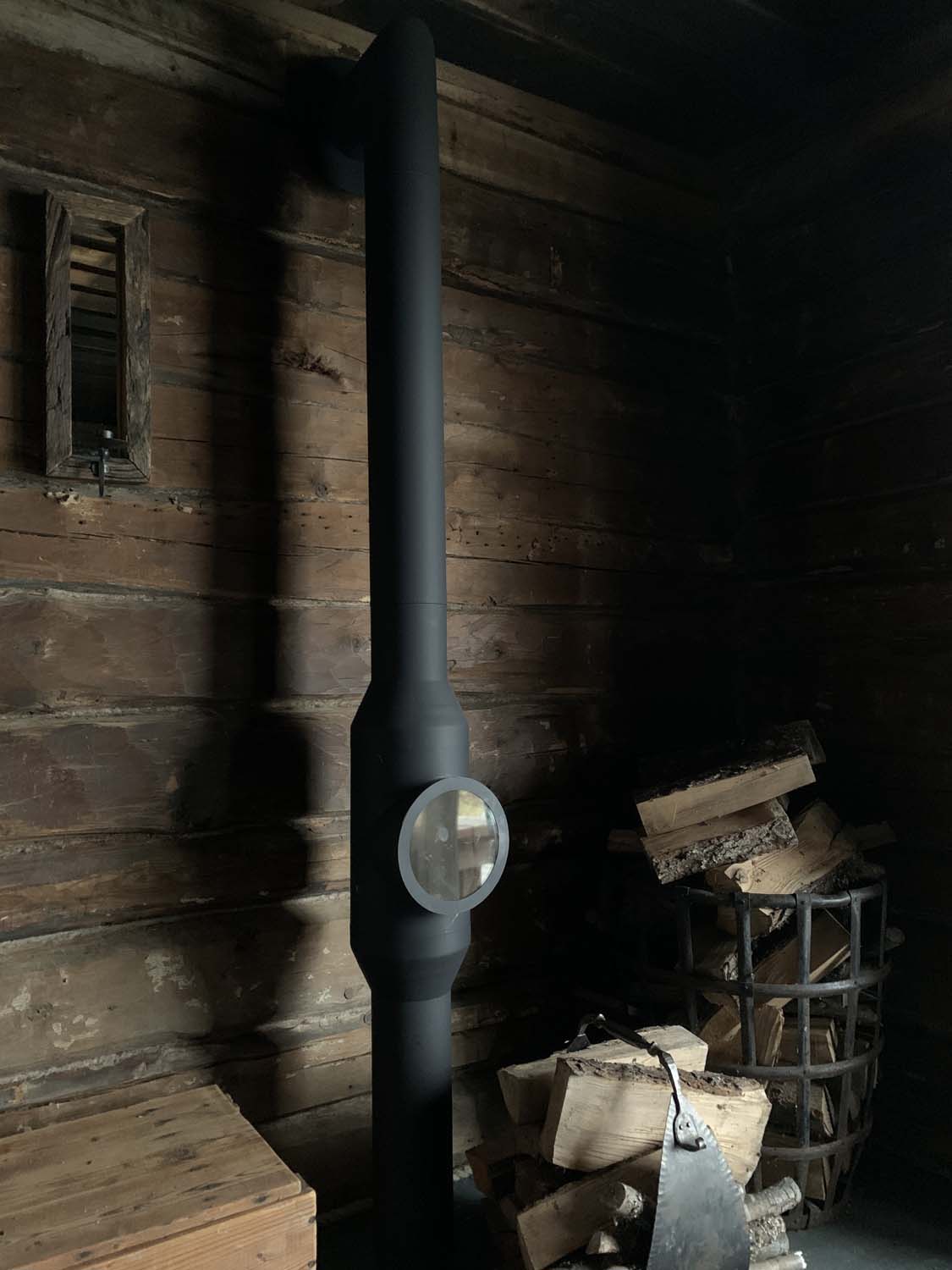 lasista. Lattialla seisova läpitakka. Takan mitat KxLxS 600x800x320 mm.